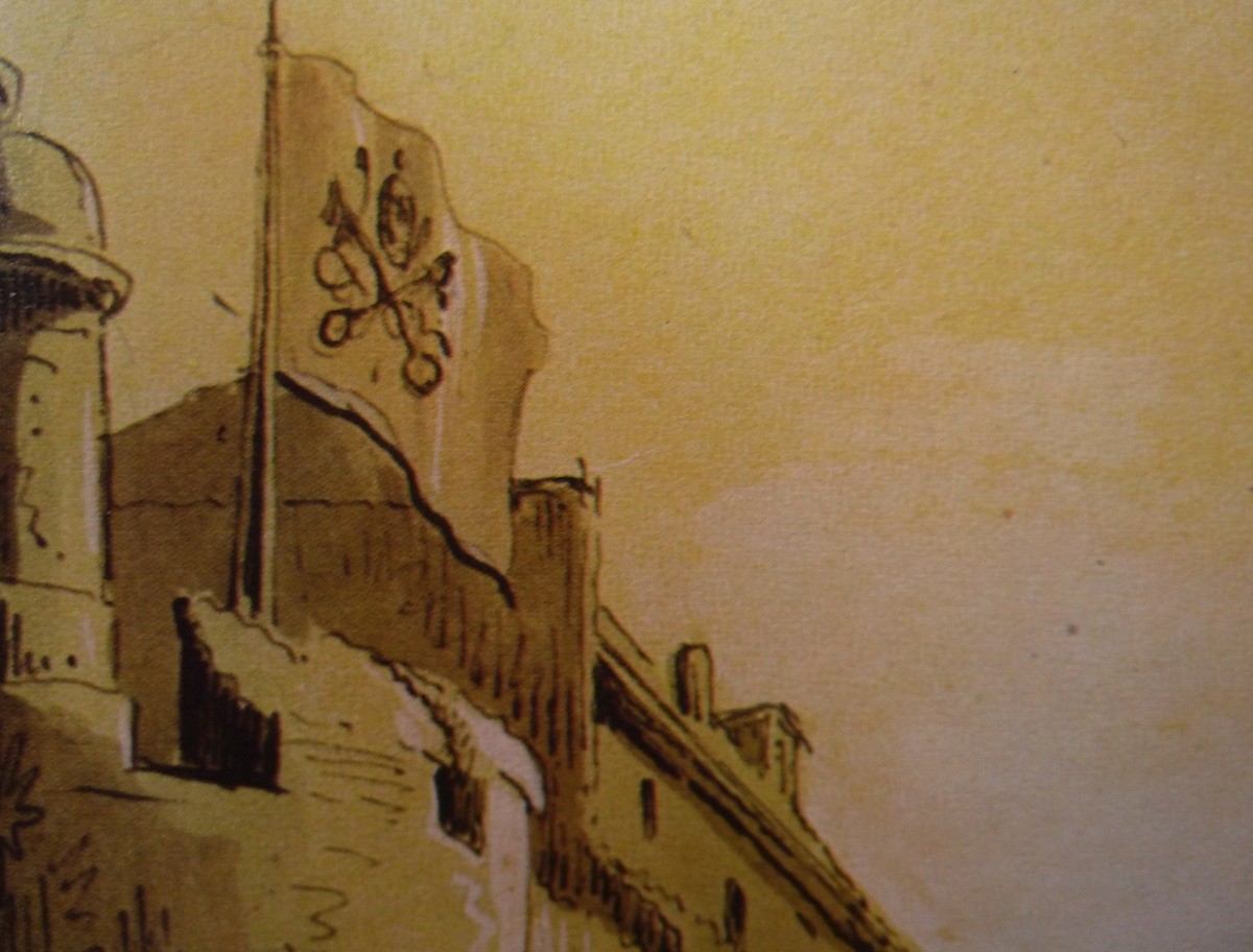 La storia da raccontare comincia con un grande silenzio, rotto solo da colpi di cannone. Nel 1860 Pesaro è tra le cittadine del territorio nazionale che tentano di cambiare lo stato politico esistente per orientarsi a governi più democratici e alla annessione ad un Paese unitario. Il Risorgimento a Pesaro è cruento come dappertutto. Il governo da scacciare è quello dello Stato Pontificio e in aiuto arrivarono le truppe piemontesi. Allora il Legato pontificio Tancredi Bellà si rinchiude dentro Rocca Costanza con le sue truppe, che i pesaresi chiamano i “barbacani” , per resistere ai bombardamenti che piovono dalla cima del monte Ardizio, che si trova di fronte, e che colpiscono duramente le pareti di sud. I buchi si vedono ancora molto bene, ma è difficile immaginare possano essere dei tiri.