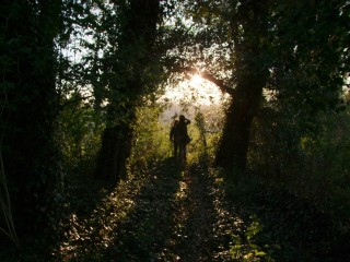 Il sentiero per arrivare al piccolo lago offre agli osservatori attenti una incredibile varietà di trame(texture): da quelle dei muri dell’abbadia a quelle del terreno e del fogliame, diversi in ogni stagione; i colori variano a seconda della luce che attraversa la vegetazione più fitta o più diradata che si attraversa per poi affacciarsi sulle sponde del lago e, con un po di fortuna, osservare gli aironi cinerini.