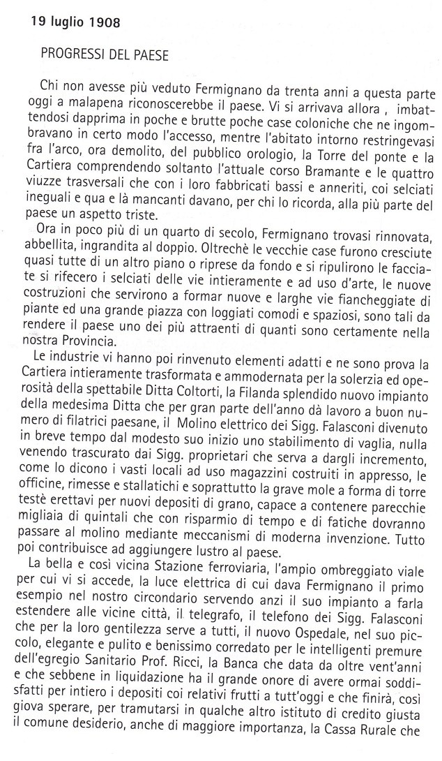 Infatti Fermignano è stata una delle prime cittadine ad avere una stazione ed era anche illuminata, insieme al viale che ancora oggi porta fino alla piazza principale, grazie all’ingegner Falasconi che nel 1897 sfruttò le acque del Metauro e costruì un molino, ottenendo energia per l’illuminazione pubblica e per il lavoro.