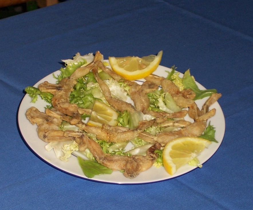 Sicuramente il piatto più caratteristico rimane quello delle rane. Preparate in vari modi, sono sicuramente da provare.