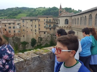 E’ un luogo da cui è possibile uno sguardo su Urbania e sul Metauro davvero straordinaria. Sopra la rampa di Francesco di Giorgio Martini. Si vede bene la parete di arenaria grigia su cui poggiano le case di Urbania.