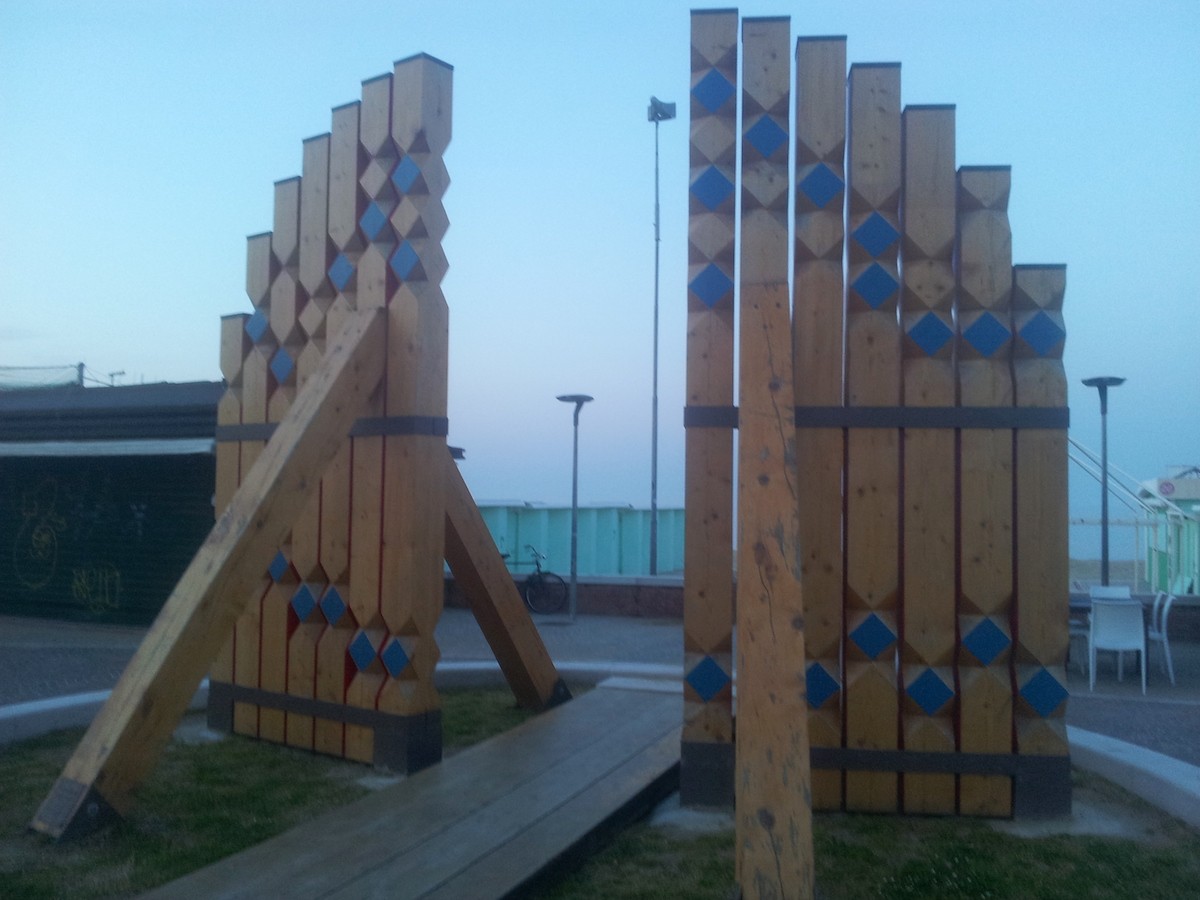 La porta aperta sul mare ricorda quella di una città fortificata che, siccome è sempre aperta, si appresta evidentemente ad accogliere qualcuno anche se inatteso. La forza del legno massiccio, dei pali che servono a sostenere la porta non sembrano voler difendere ma accogliere e proteggere.
