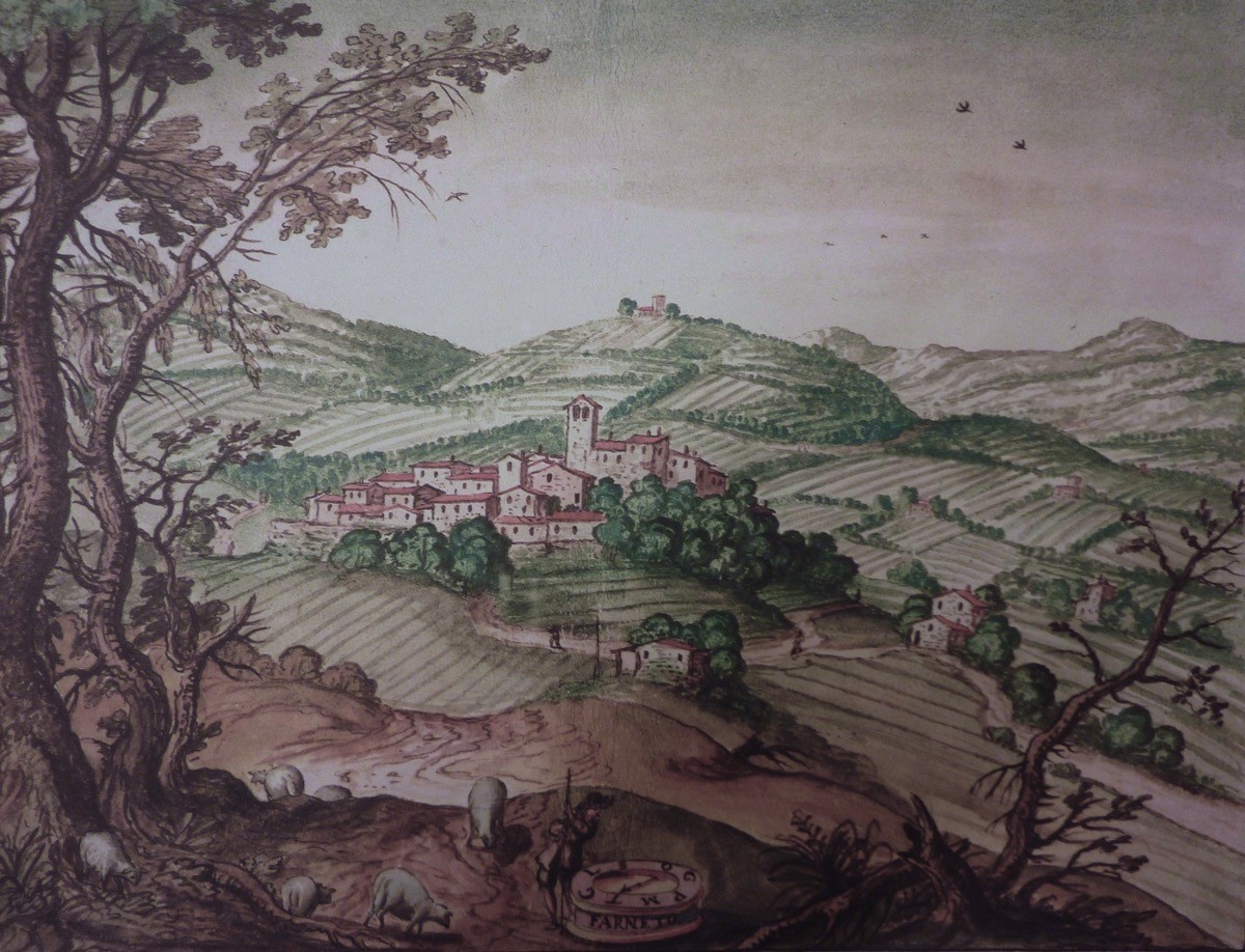 Oggi la strada per Farneto si snoda su un crinale che ai lati degrada in una bella campagna disseminata di case coloniche.