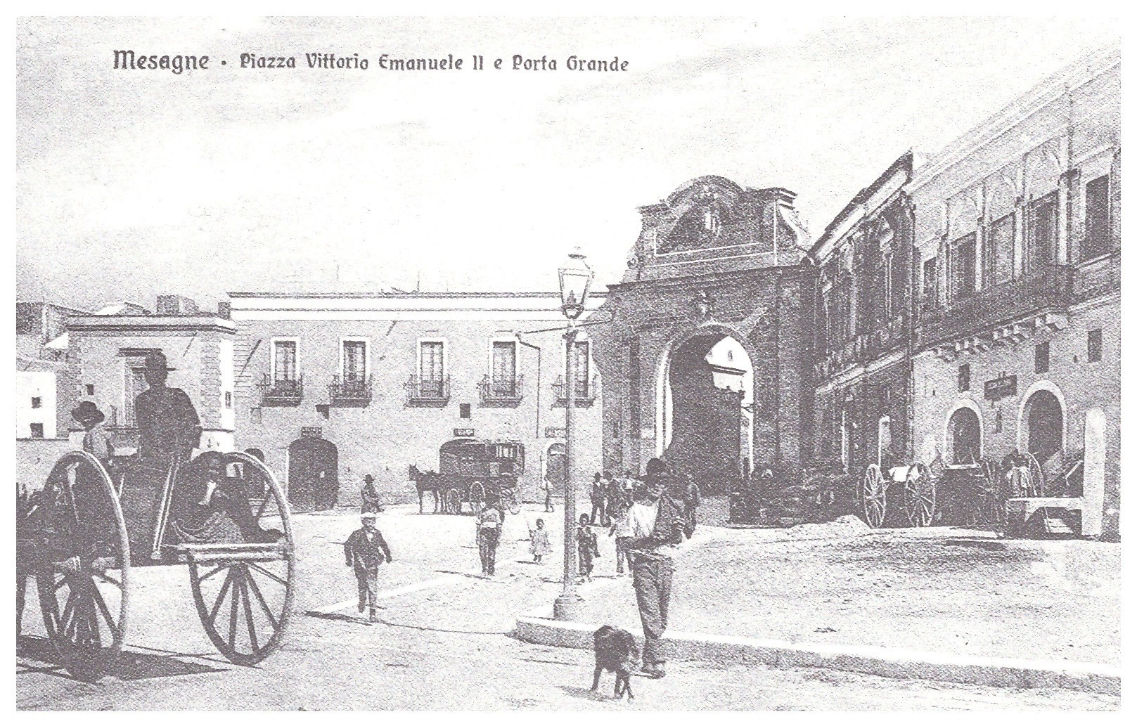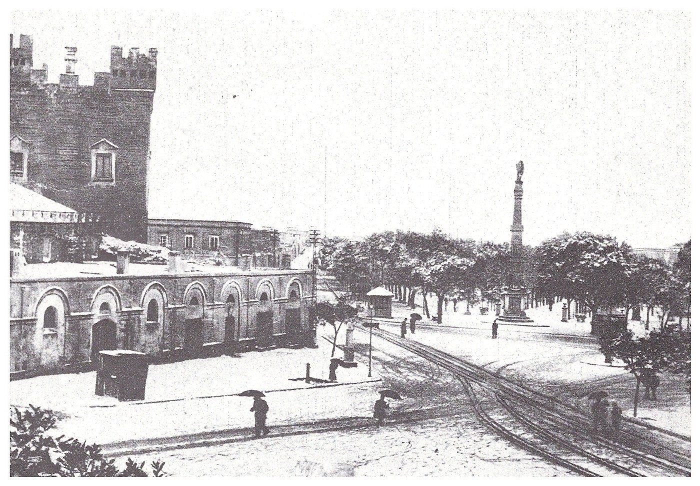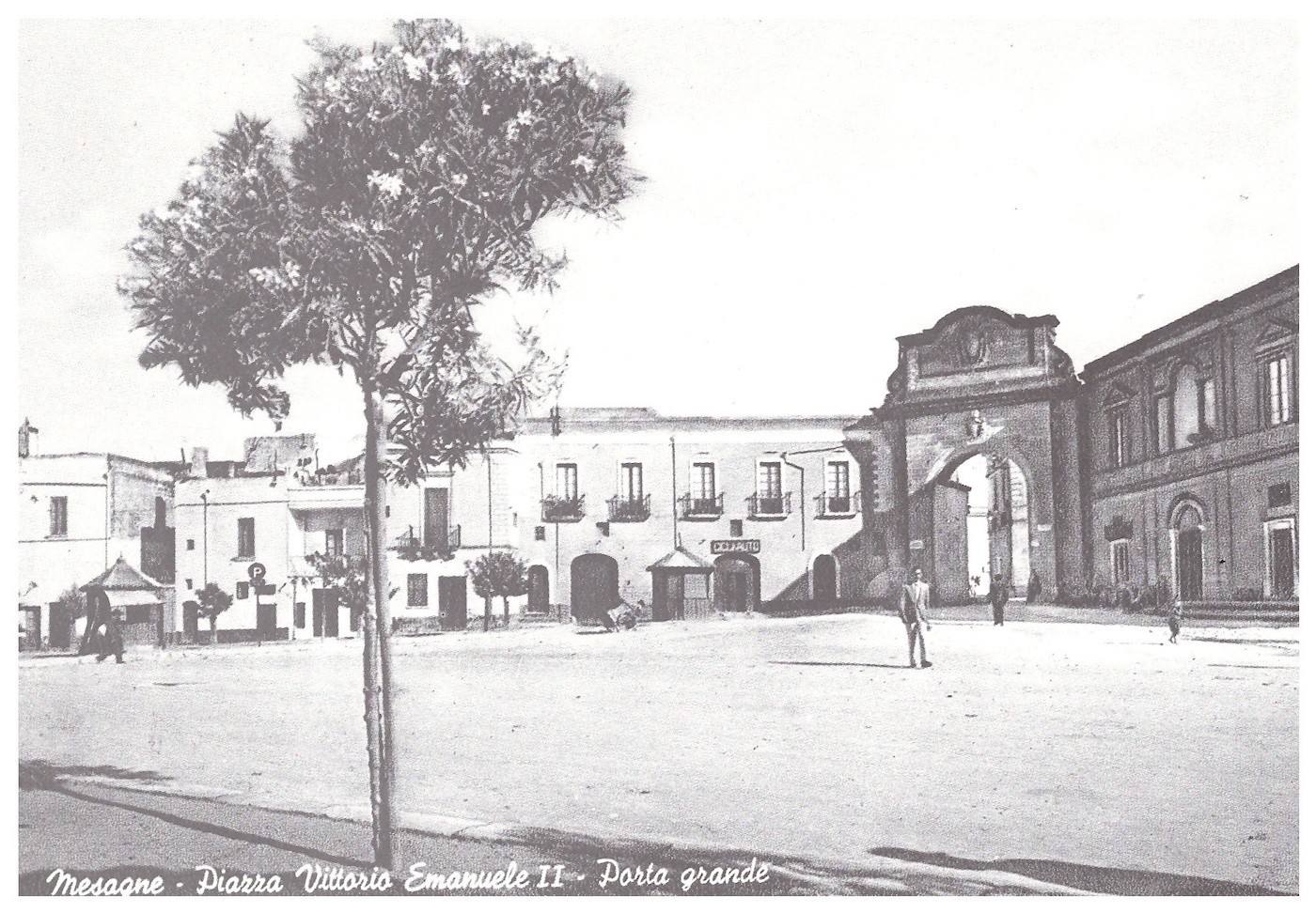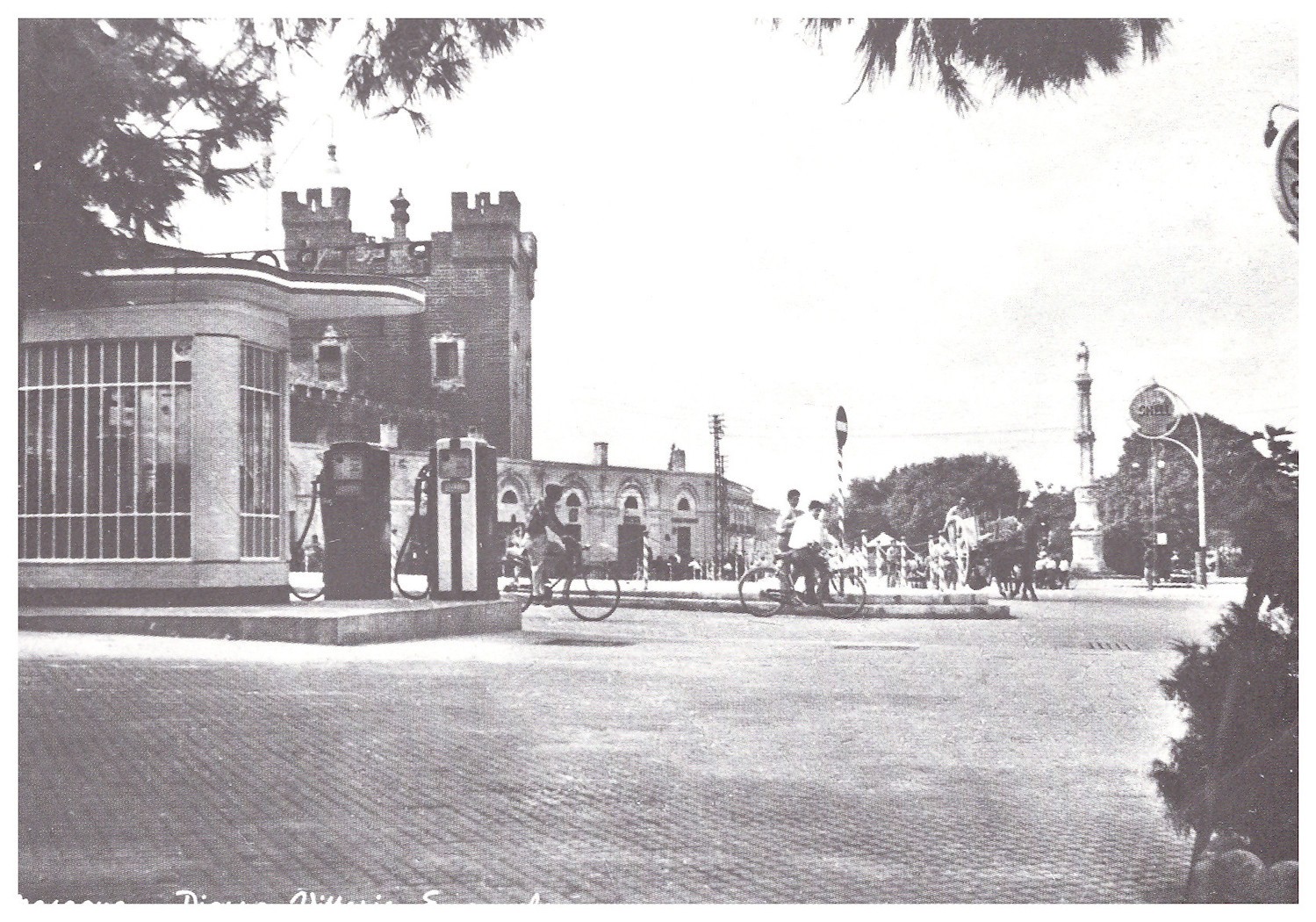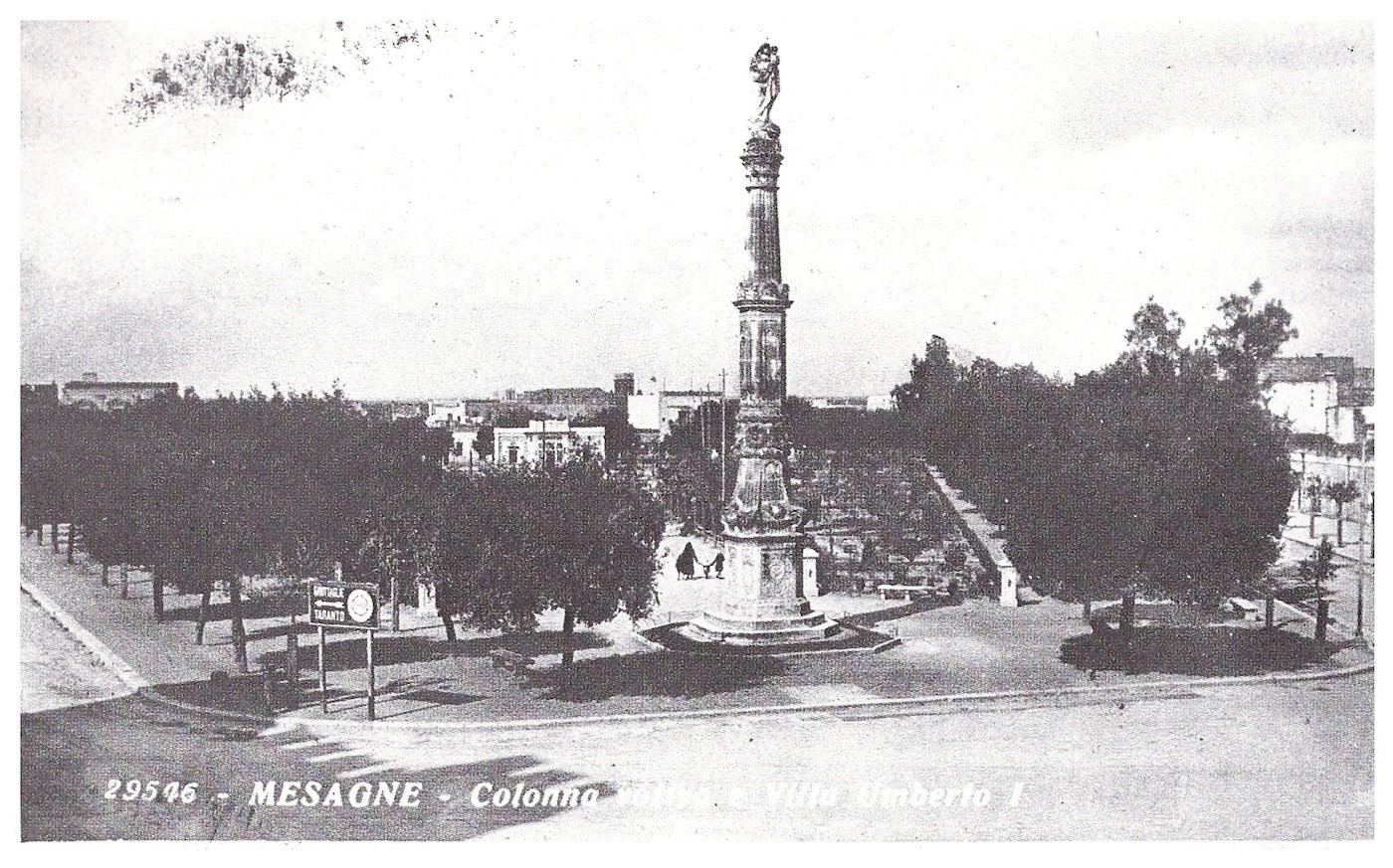 Le immagini mostrano le trasformazioni della zona nel tempo: al centro, sempre e comunque la colonna votiva, luogo di appuntamento per i giovani di Mesagne.