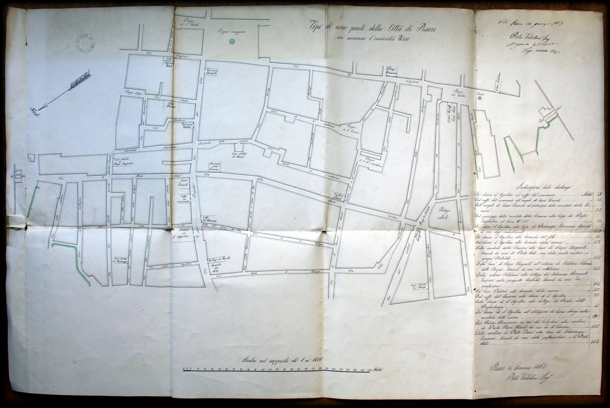 Ma la mappa indica l’area urbana come il luogo di una vicenda che a Jackson poteva senz’altro piacere molto: l’assassinio di un uomo. La mappa 1867 è allegata a una perizia dell'ingegnere Fradelloni inclusa in un fascicolo processuale aperto sull' omicidio del prefetto Alessandro Ferro. Il prefetto fu ucciso in pieno centro storico mentre passeggiava con la moglie. Un fatto cruento che ebbe molta risonanza in città.