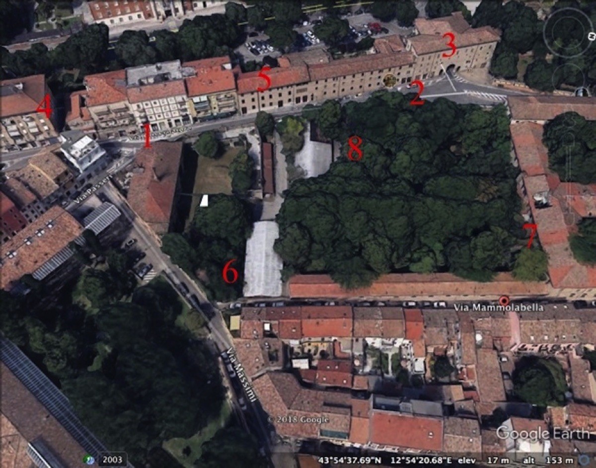 L’area ha inoltre il suo fascino legato al fiume e al porto, ma anche agli Orti Giulii, costruiti in onore di Giulio Perticari tra il 1827 e il 1830, che hanno rappresentato uno dei primi esempi in Italia di parco pubblico. Gli orti sono stati inoltre costruiti in un contesto che aveva già visto in passato la presenza di un giardino di eccezionale bellezza, il Barchetto ducale, dove furono anche ospitati Bernardo e Torquato Tasso.