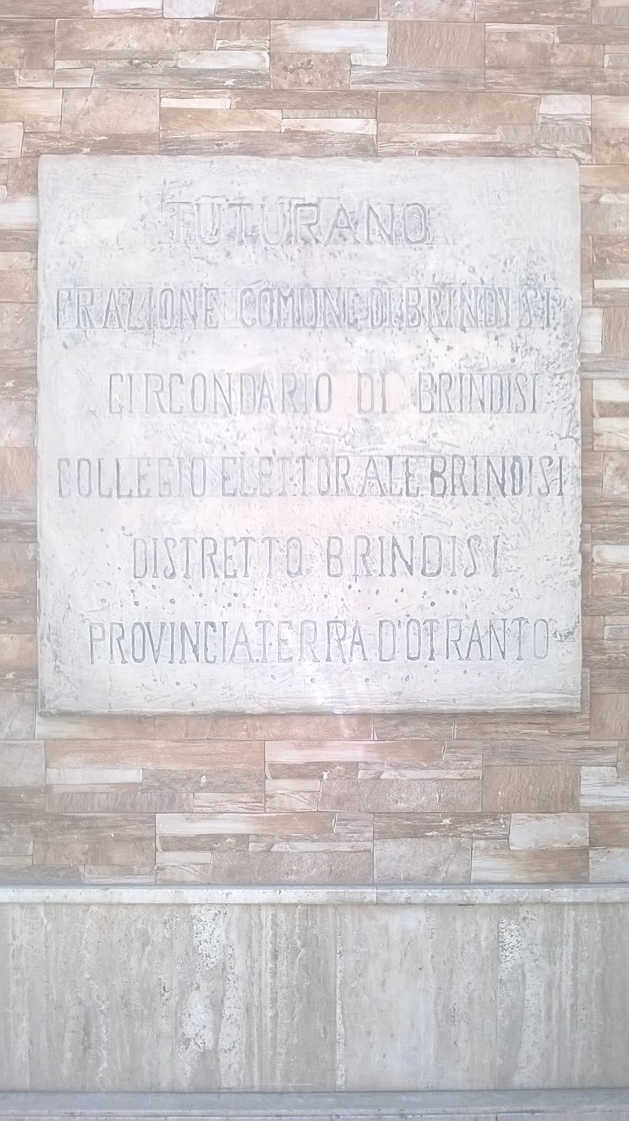 Sul muro della casa che fu Angelo Invidia si trova l’epigrafe che descrive la situazione amministrativa di Tuturano prima della creazione della provincia di Brindisi