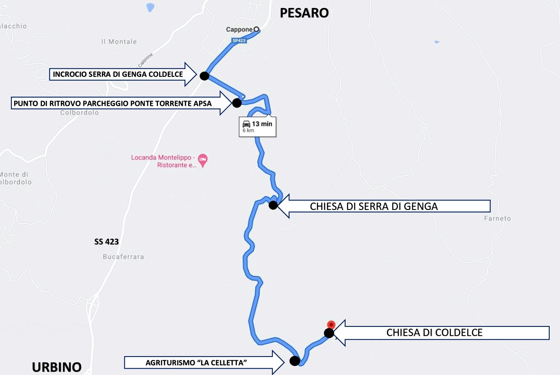 Lasciando la strada che porta ad Urbino, superato Cappone, a sinistra un cartello azzurro indica Coldelce. Ma non sono in molti a cercarlo. Neppure la gente del posto sceglie mai questa strada che arriva a 320 m. di altezza per fare una passeggiata o portare i bambini in un luogo di natura. La strada si inerpica in modo tortuoso e mano a mano la vegetazione è così fitta che non si può godere del panorama intorno. Ma non era così un tempo.