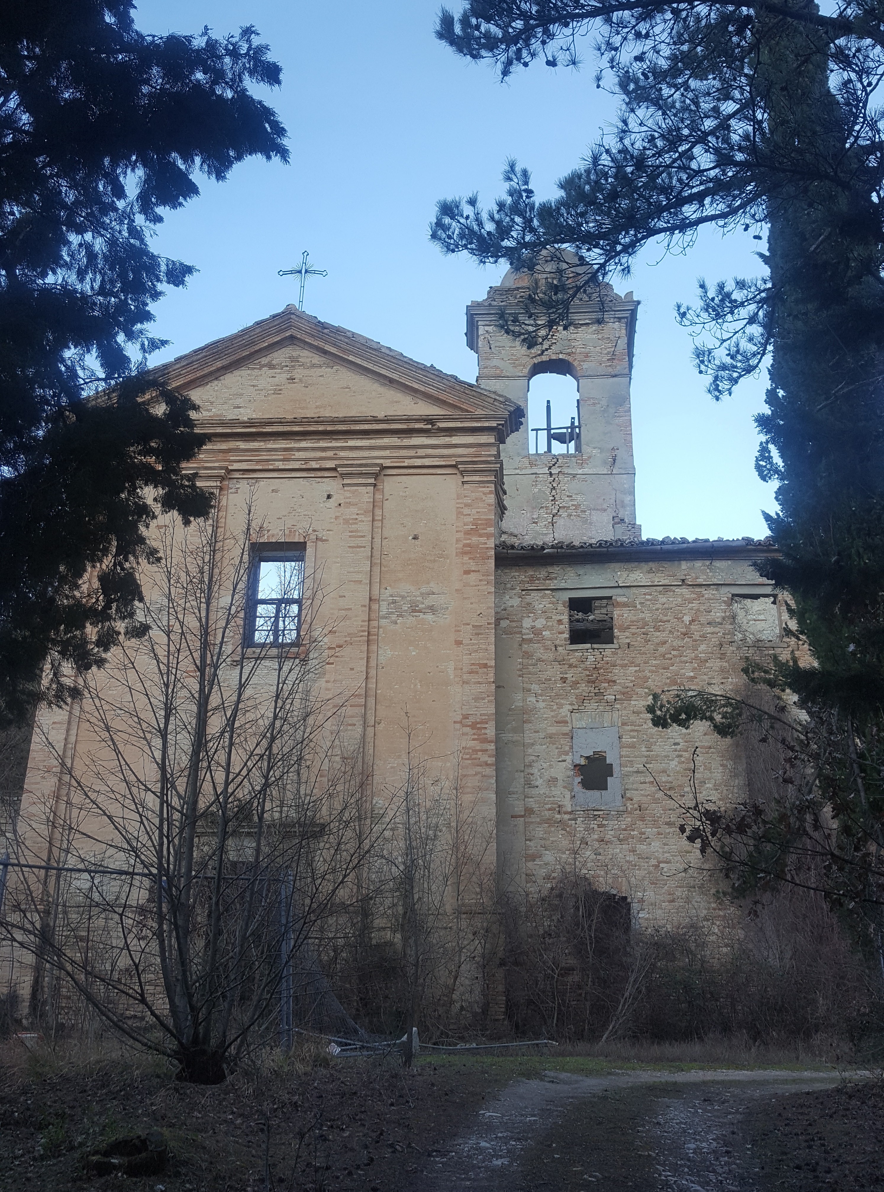 La prima edificazione della chiesa risale intorno all’anno 1000. Fino al XIV secolo era soggetta al vescovo di Urbino che ne aveva il beneficio di beni e diritti anche per la percezione di diritti lucrativi. Nel 1840 fu ricostruita la chiesa e la canonica. La nuova chiesa misurava 17 metri di lunghezza per 7,70 di larghezza. La facciata in mattone delimitata da due paraste d’ordine toscano, scannellate e rudentate, era coronata da un aggettante cornicione su cui poggiava la copertura a volta. Sullo sfondo, un’abside semicircolare, con paraste e cornicione, chiudeva il corpo della chiesa. Era illuminata da 3 finestre.