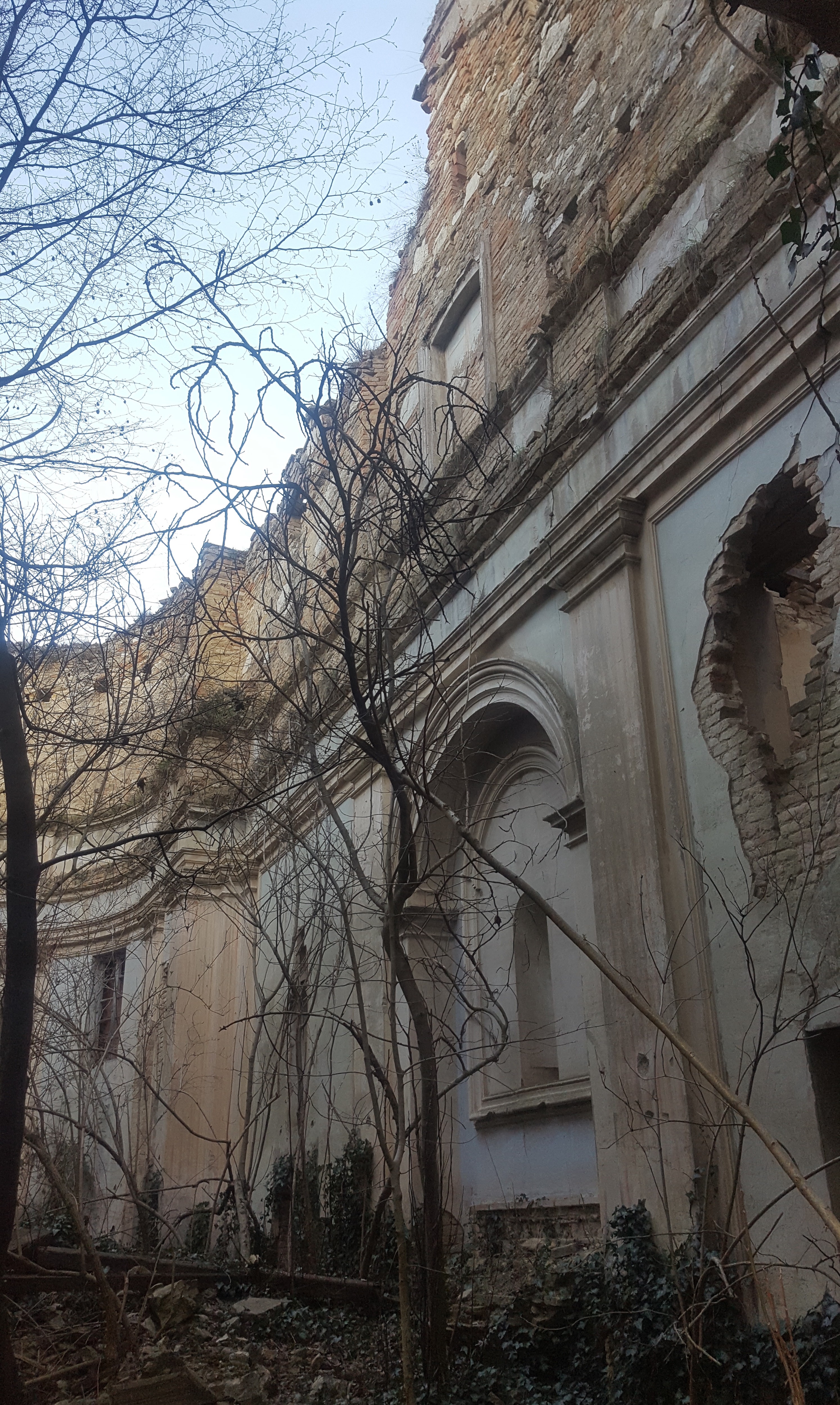 La prima impressione che si ha vedendo questo edificio abbandonato così imponente in un luogo cosi solitario è un sentimento di stupore.