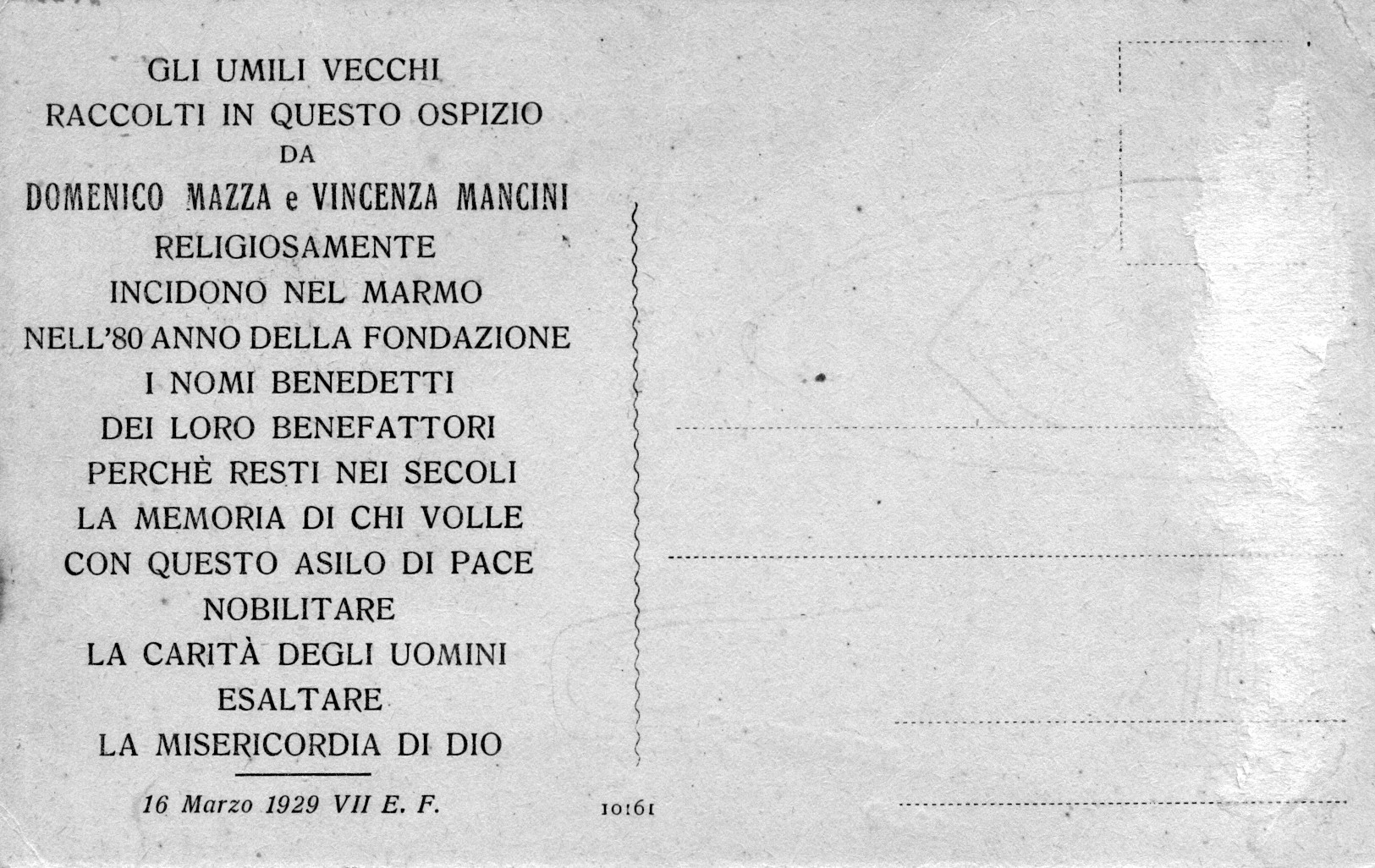 Nella stessa via era anche un altro istituto di sostegno  che sorge nell’800: l’ospizio cronici e invalidi.