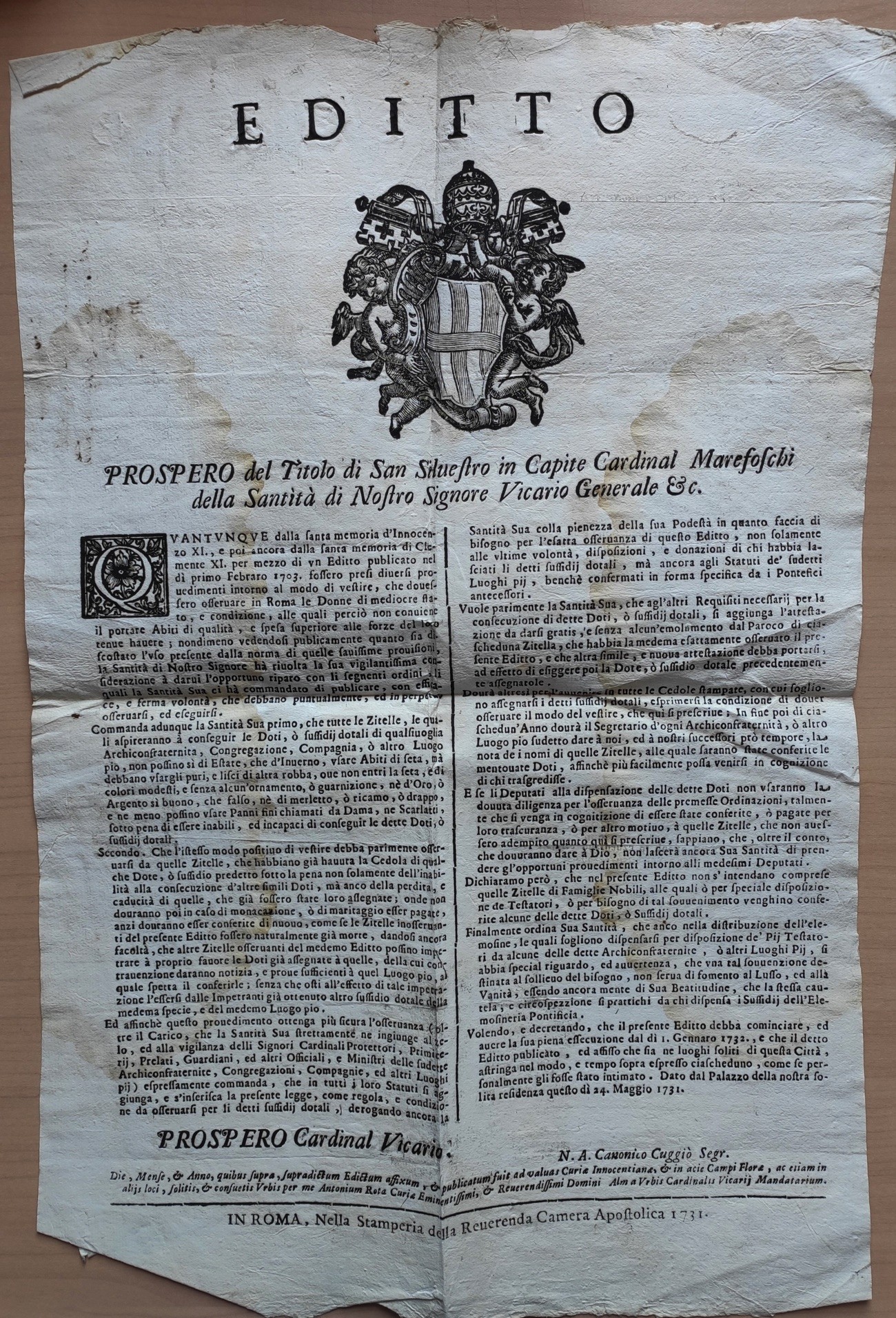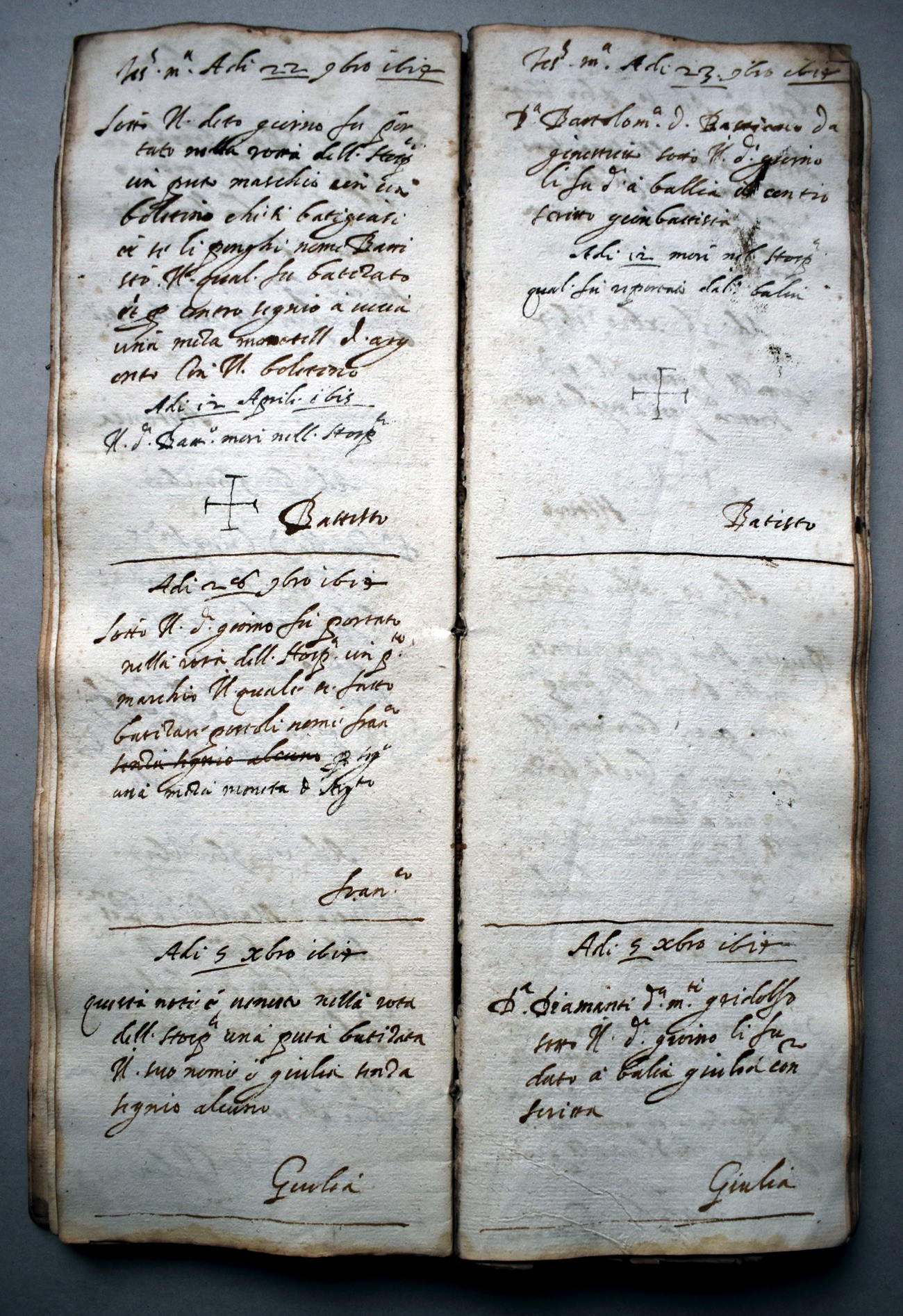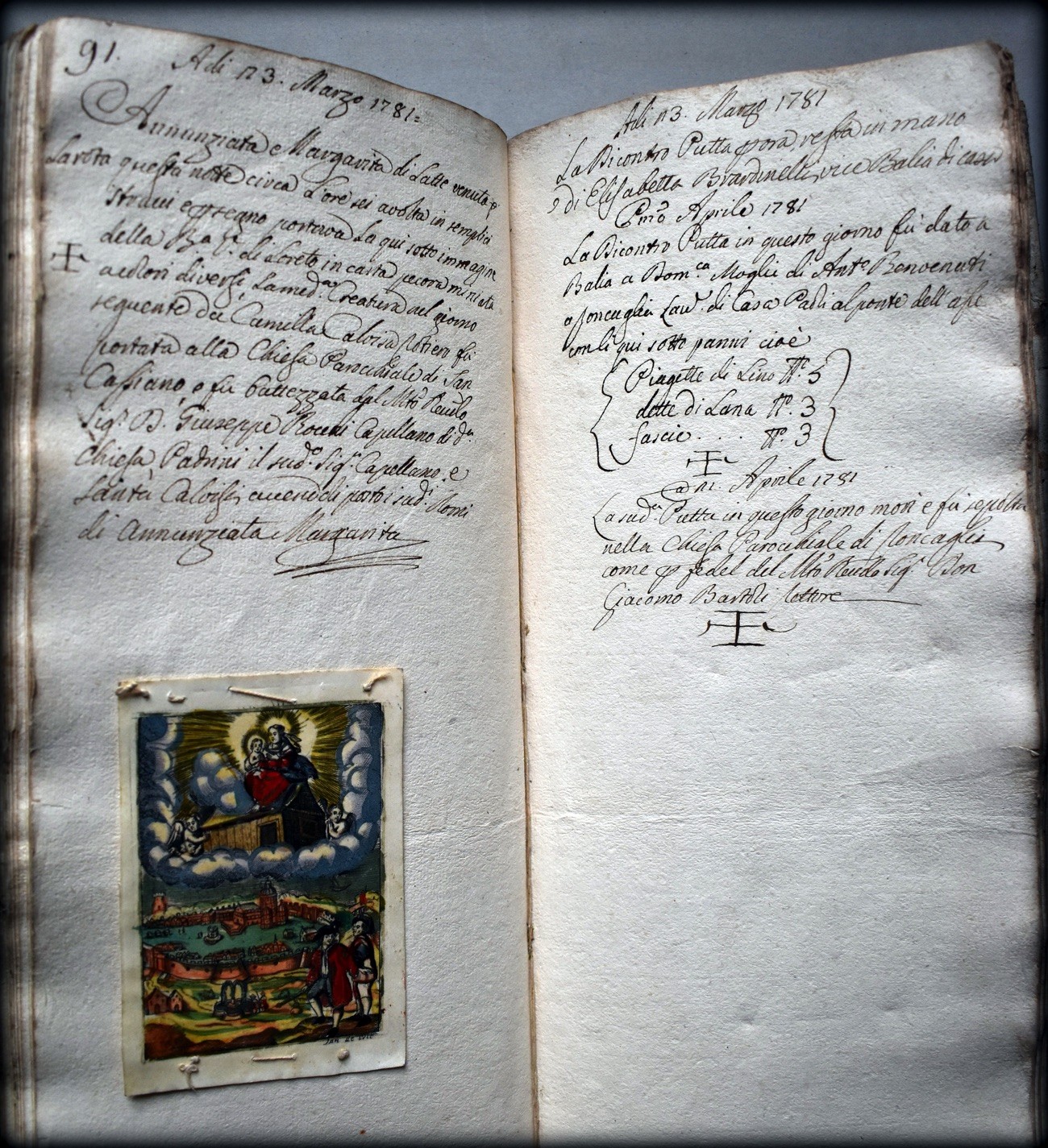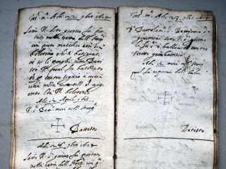 I registri degli esposti iniziano dal 1612. I ragazzi erano accolti dalla nascita ai 12 anni, le ragazze fino ai 14. Ai bambini venivano applicati dei “segnali”. I segnali degli esposti erano dei segni di riconoscimento del neonato che la mamma lasciava perchè fosse riconoscibile: un bigliettino con I nomi che si sarebe volute dare al bambino, oppure una moneta tagliata a metà (la metà rimaneva alla mamma), ciocche di capelli, santini, pezzi di tessuto.