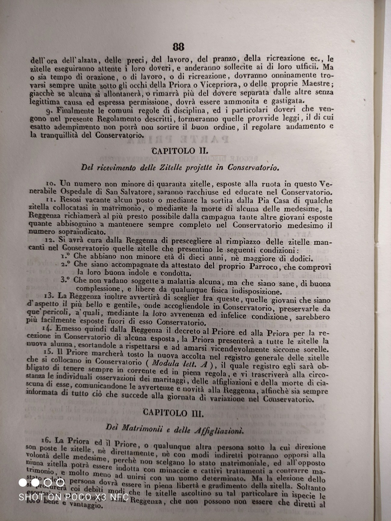 Per le ragazze all'interno dell'Ospedale esisteva un Conservatorio in cui potevano rimanere anche oltre quell'età, il Conservatorio delle proiette o delle zitelle. Aveva la finalità di mantenere le ragazze fino al matrimonio, che nel frattempo potevano essere anche mandate a servizio presso le famiglie. Esistevano dei registry che ora sono nell’Archivio di Stato.