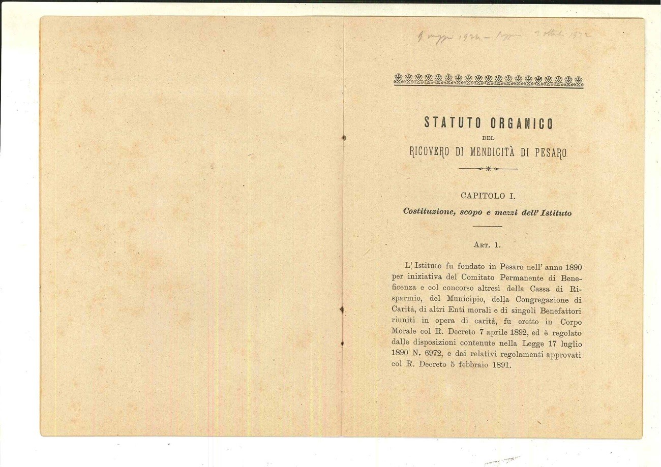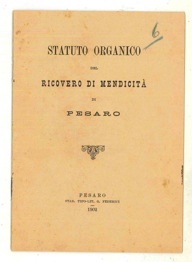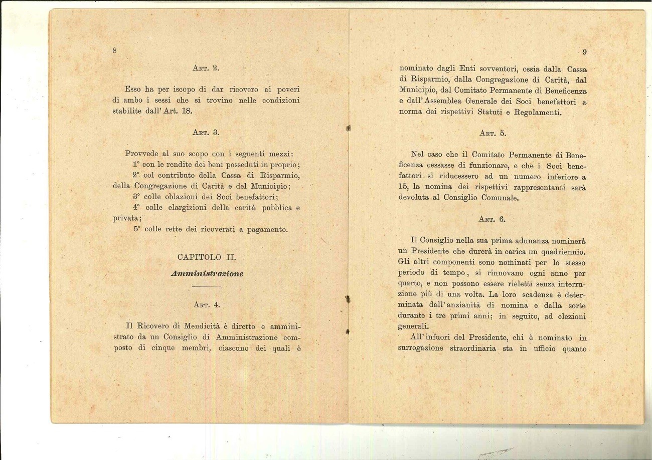 Fonte: Statuto approvato nel 23 ottobre 1901 (Statuto organico del ricovero di mendicità, 1901 a stampa)
