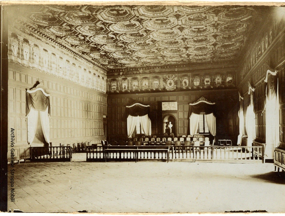 Pochi sanno che all’interno del Palazzo apostolico si conservava anche l’archivio dei legati, quello che oggi è confluito in Archivio di Stato. Nel secolo XIX l’Archivio aveva ricevuto il nome di Archivio metaurense in quanto era conservato in questo stesso salone e il pesarese Giuliano Vanzolini ne curò il primo ordinamento.