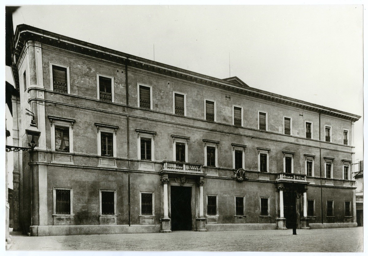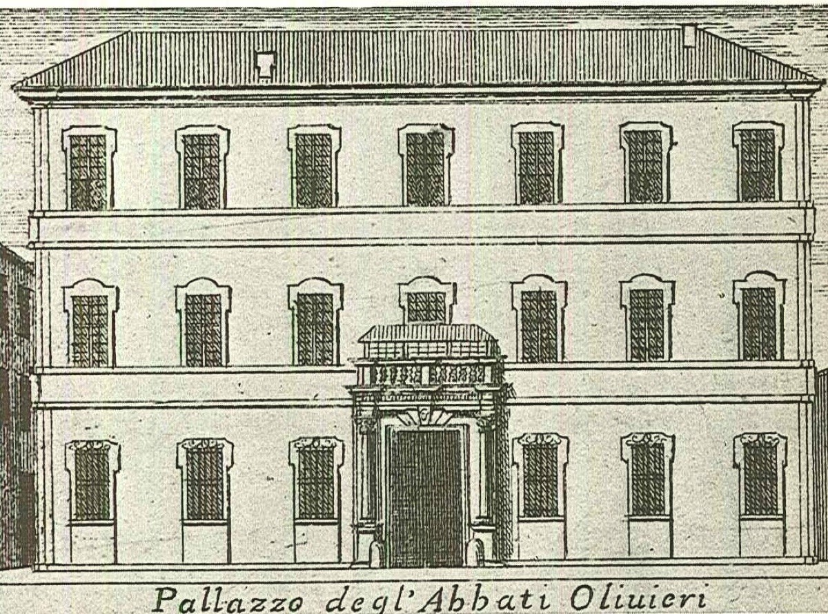 Il palazzo della famiglia di Annibale degli Abbati Olivieri venne donato alla città per ospitare la Biblioteca, che venne  aperta al pubblico nel 1793 e che tra il 1885 e il 1892 fu trasferita nell'attuale sede di Palazzo Almerici, un palazzo nobiliare costruito in più fasi nel corso del Seicento poiché dal 1892 divenne sede del Liceo musicale Rossini a seguito del testamento di Rossini.