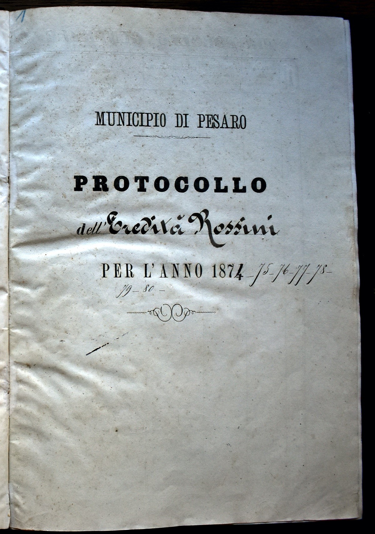 A seguito della donazione la comunità di Pesaro intraprese le azioni necessarie per accogliere l’eredità con la nomina di una commissione. Il Liceo fu eletto ente morale (1869). Il protocollo conservato in Archivio di Stato (Protocollo dell'Eredità Rossini) ripercorre i passaggi che portarono all’istituzione del Liceo Rossini tra gli anni 1874 – 1880.