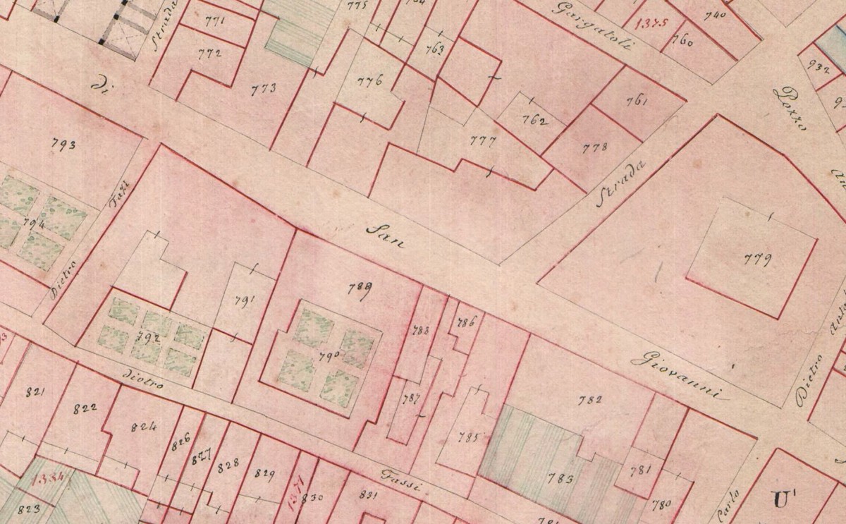Nel brogliardo (elenco dei numeri di mappa con i rispettivi possessori) del Catasto Gregoriano (primi decenni del 1800) compare un GB Passeri che però è GB Passeri Iunior il figlio
