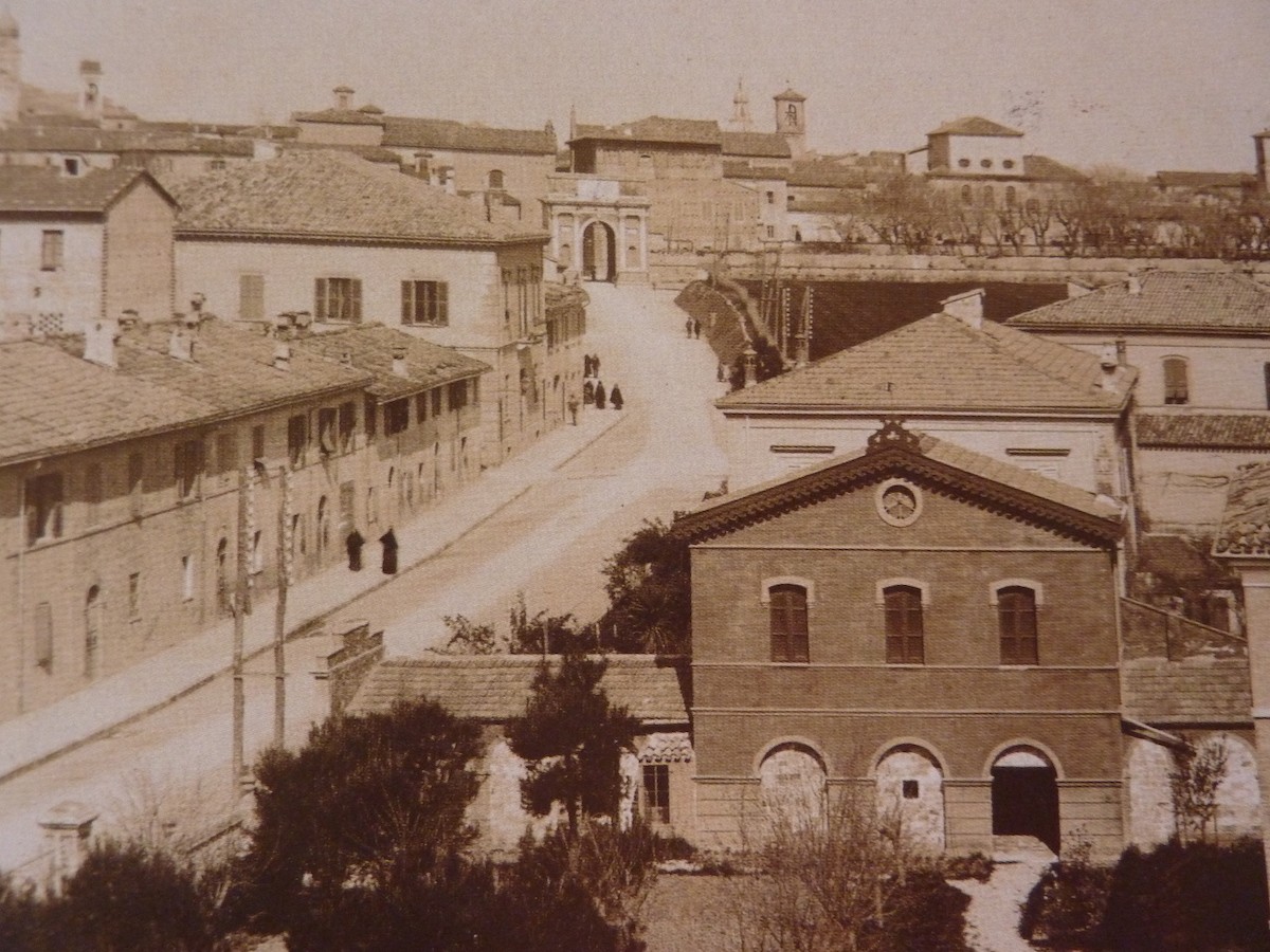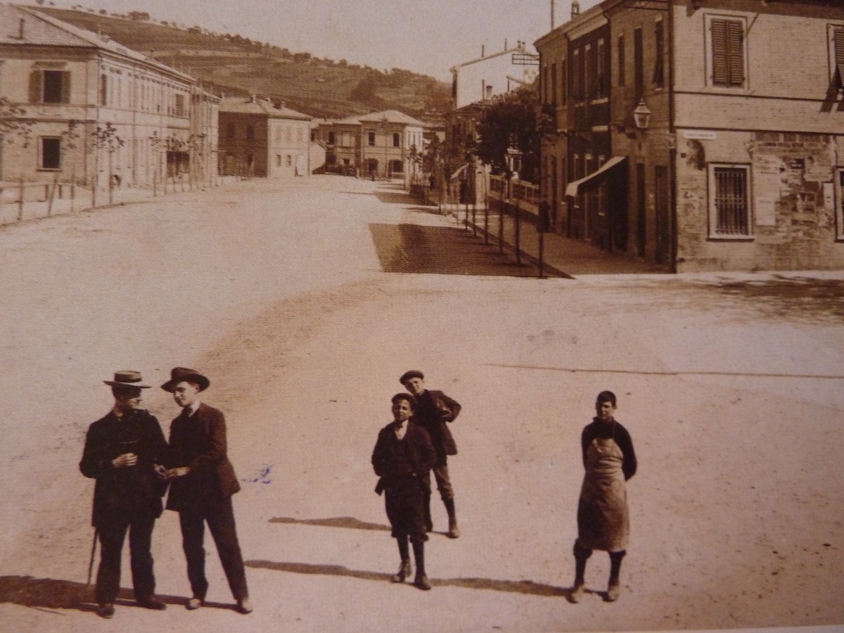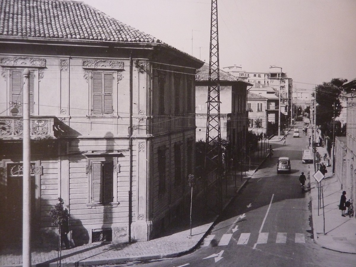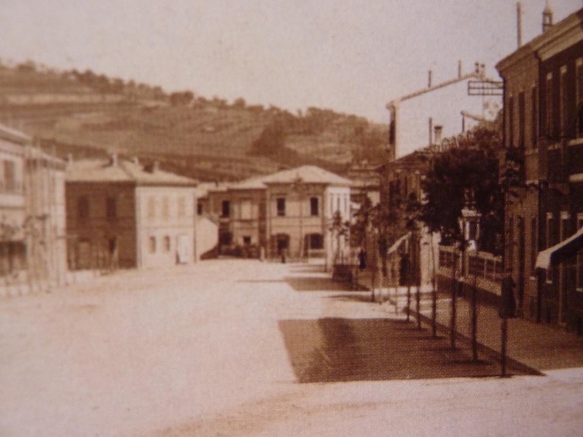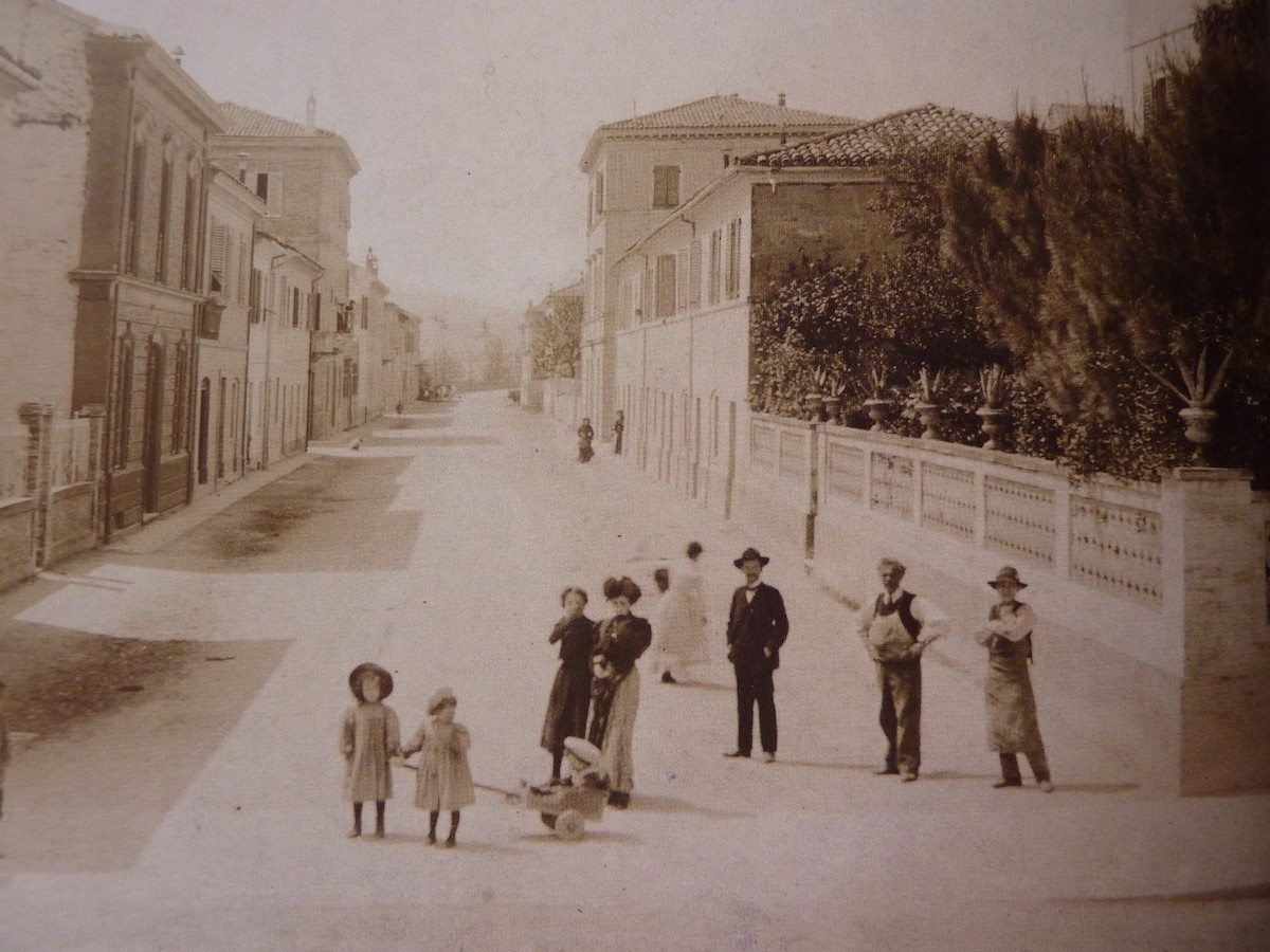 Quando le mura di Pesaro futono abbattute la via che si apriva di fronte alla porta era deserta e silenziosa. Era una strada bianca, che portava nella vicina campagna. Poi cominciarono a sorgere le prime ville, fuori città: villa Jolanda (in via De Gasperi), la villa del pittore Mariotti.
