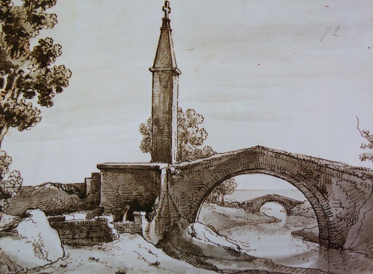 L’albero che con molta discrezione conserva un pezzo di racconto di una storia non troppo lontana si trova sul ponte che permette e permetteva di attraversare il torrente Genica, un vero spartiacque tra l’area limitrofa alla città e la campagna. In un bel disegno di Romolo Liverani del 1840 il ponte in laterizio appare sormontato di un obelisco che in realtà nascondeva un sistema idraulico che permetteva all’acqua proveniente dall’acquedotto romano di Novilara sormontando il torrente. Il sistema era ingegnoso e ha permesso di portare l’acqua dal monte di Novilara alla piazza di Pesaro. C’è il walkscape Il sentiero Santa Croce che lo racconta.