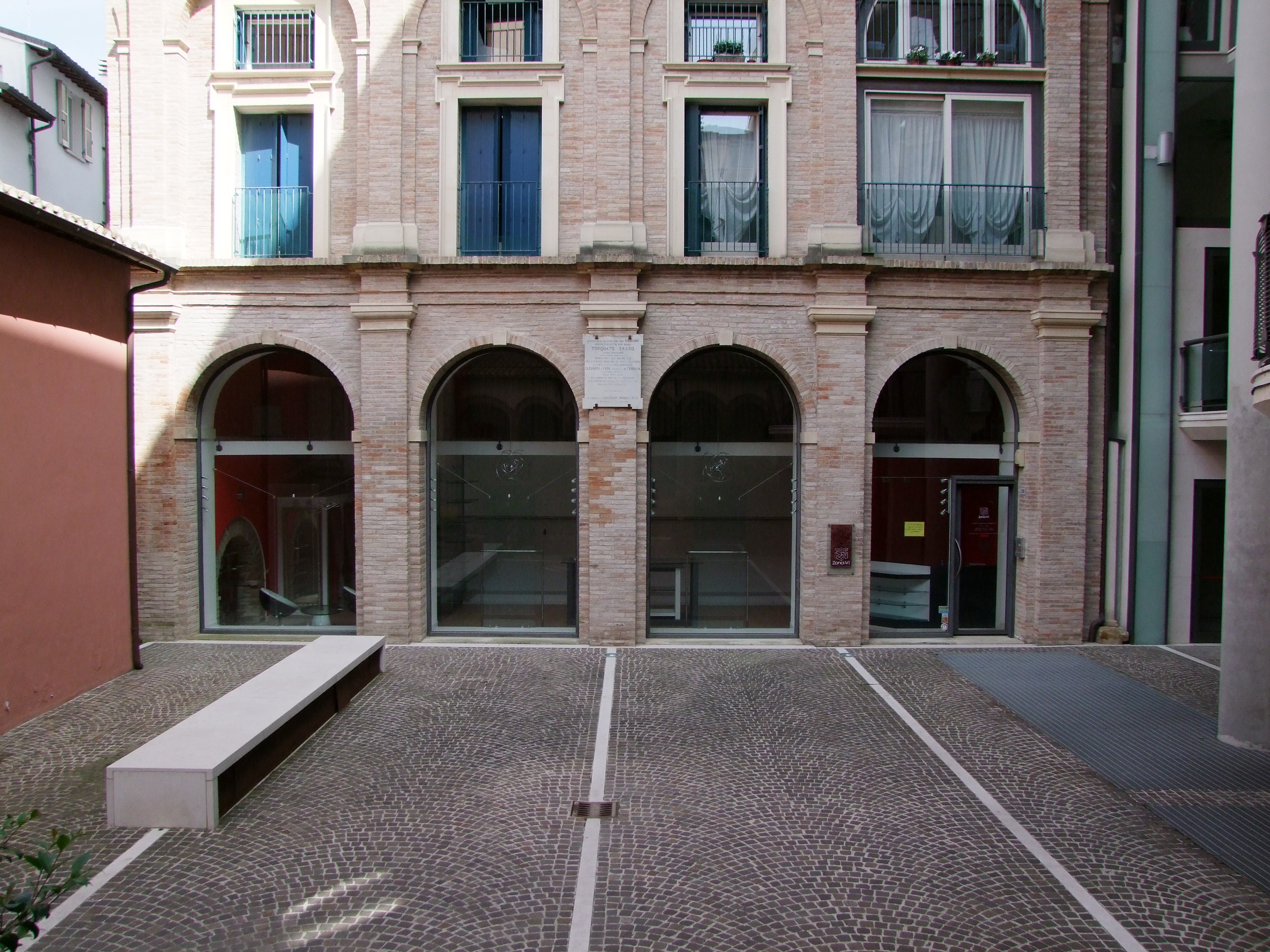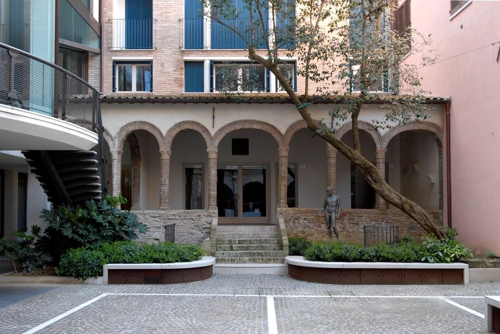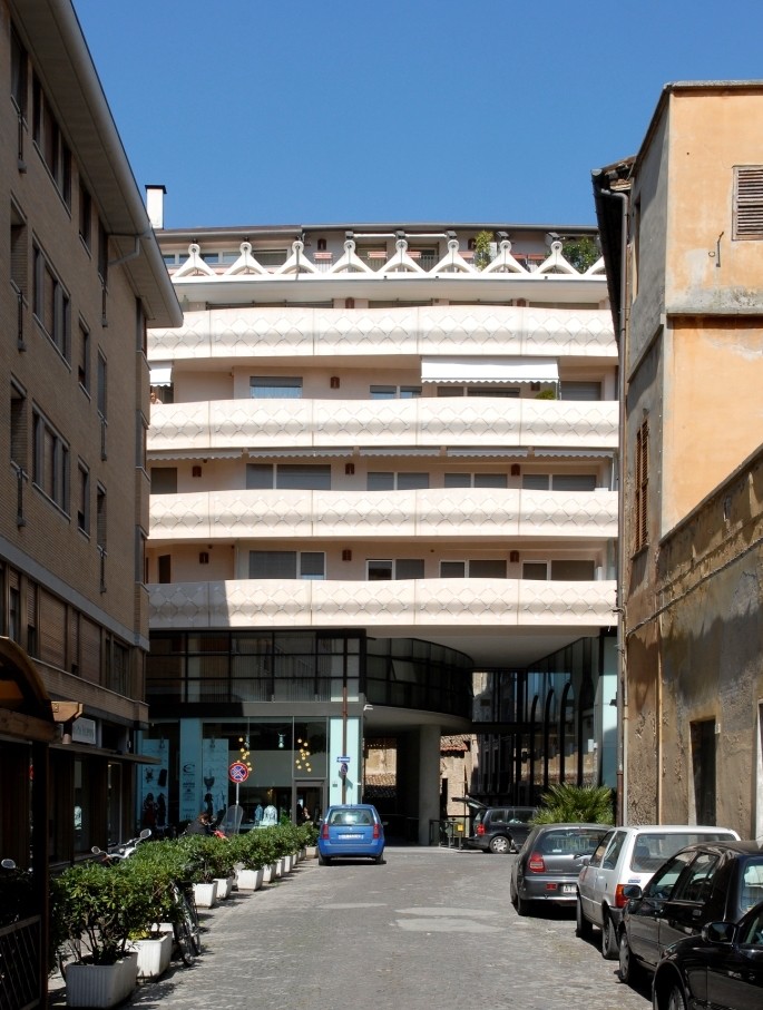 Il progetto si è articolato intorno ad un vuoto di mt. 11 di larghezza e di mt. 8 di altezza ricavato nel corpo di fabbrica del Nuovo Palazzo in corrispondenza di una direttrice che da Via Branca, percorre Via Zongo e Via Sabbatini e attraversa il nuovo fabbricato, la sua corte interna (piazzetta) ed il vicolo fino a Via Mazza.